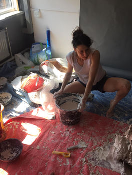The site specific work that I created for this show was a personal baptismal font. "The Font", consisted only of natural materials: plaster and soil, and had larger dimensions comparing with the traditional baptismal fonts, used in churches to baptise the babies. (please follow the link for work presentation and info)